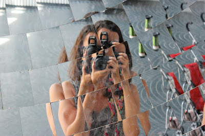 We didn't get to play with the fun mirrors on the way in last time we visited because it was very cold. This time, the boys got a pretty big kick out of it, and I was able to take a pic of all of us in it.